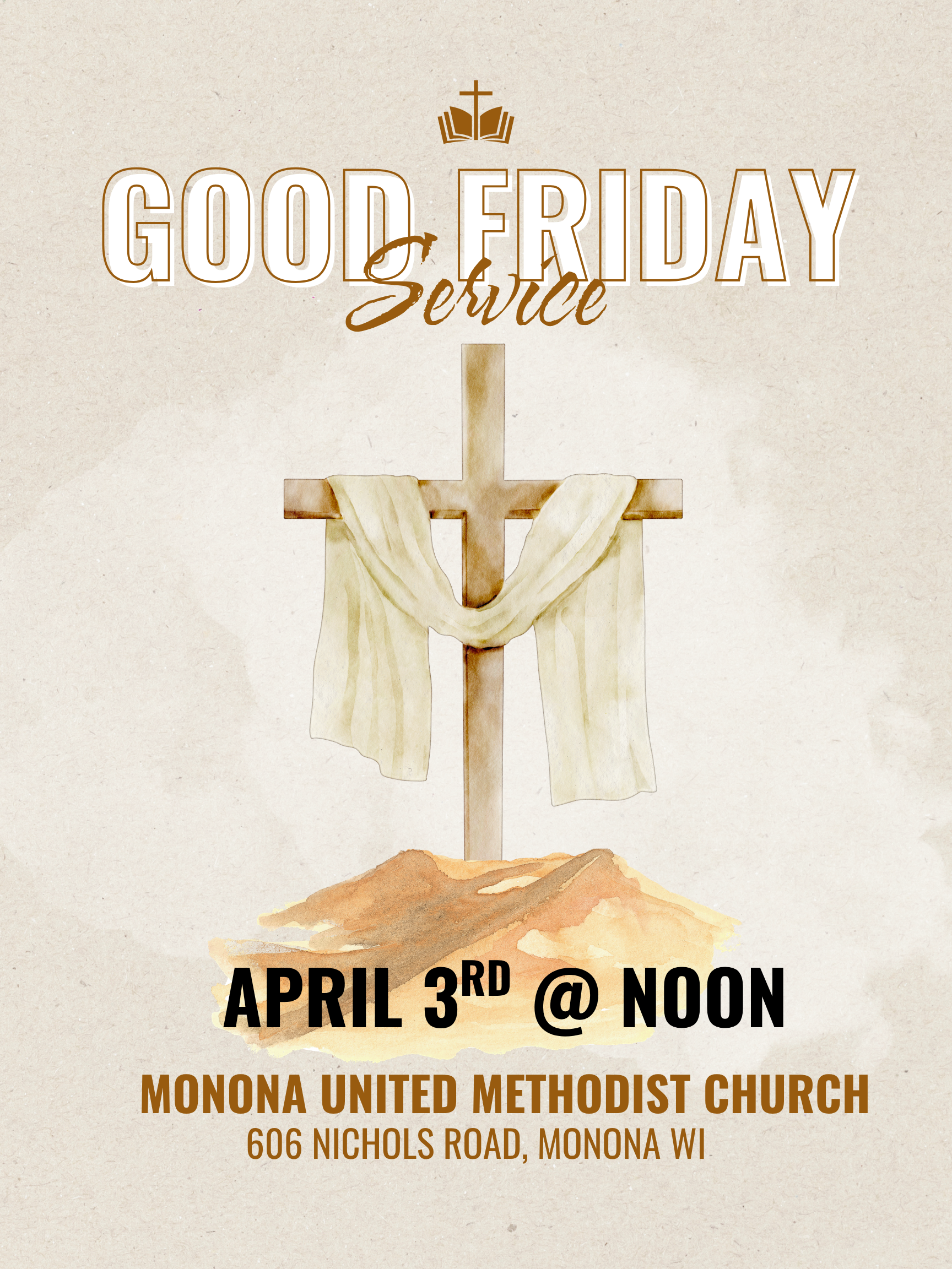 Friday - April 3, 2026 - 12:00pm - Friday - April 3, 2026 - 1:00pm COME JOIN US FOR OUR GOOD FRIDAY SERVICE